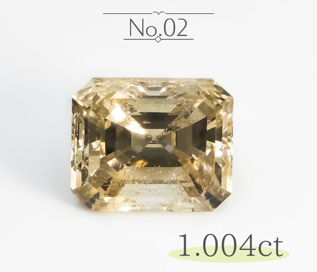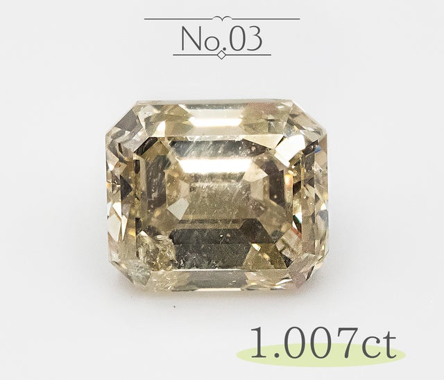 同じ1カラットのダイヤモンドでも、「ブラウン系、多少の内包物がある、カットはエメラルドカットで透明度がある」ものは、ジュエリーとしての輝きは十分に、でもお手頃な価格で手に入れる事が出来ます。