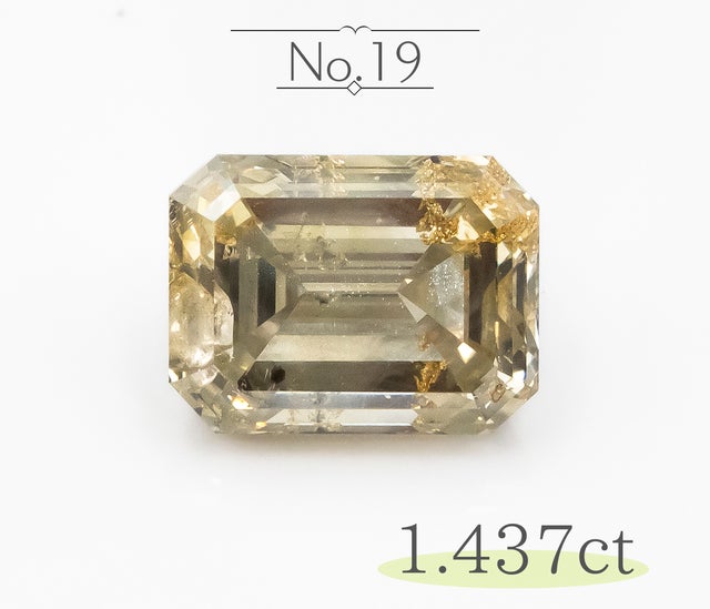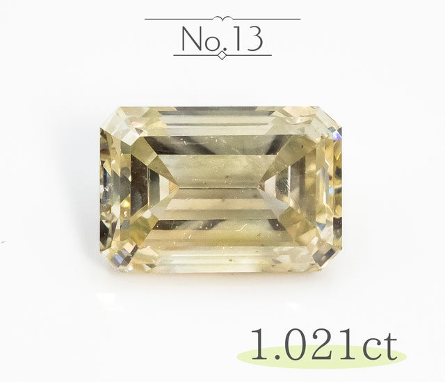 透明感が特徴のエメラルドカットなので、第一弾の輝きを重視したラウンドブリリアントカットのような、輝きが内包物を目立たせなくする、というカットではありません。従って内包物が比較的容易に発見出来るため、内包物はできるだけ目立たないものを選んでおります。