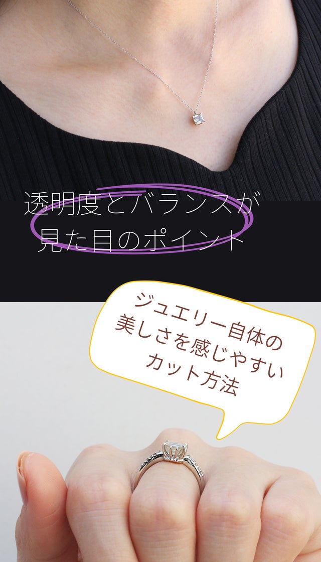 - 「エメラルドカット」は透明感がポイント。ラウンドカットとは違う魅力を体験。