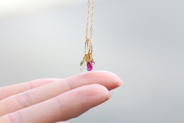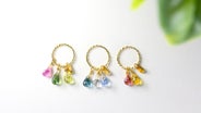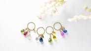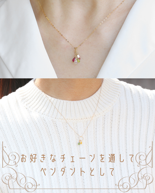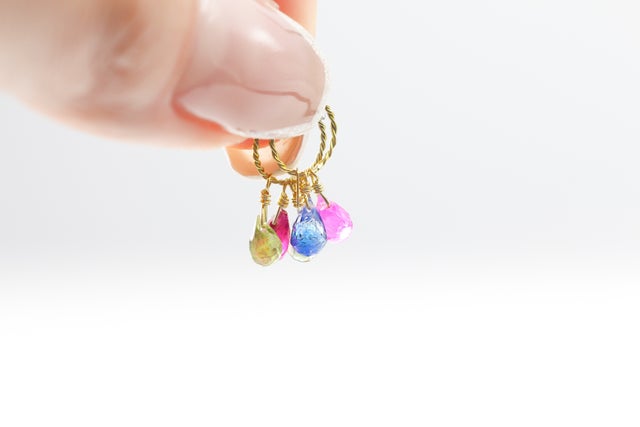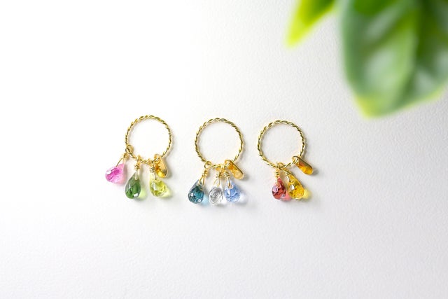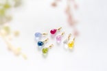 7色の宝石「サファイア」を、「2個付け」「3個付け」の可愛いチャームにしました。チェーンを通してペンダントに、フープを通してピアスに。お好きにカスタマイズできます。