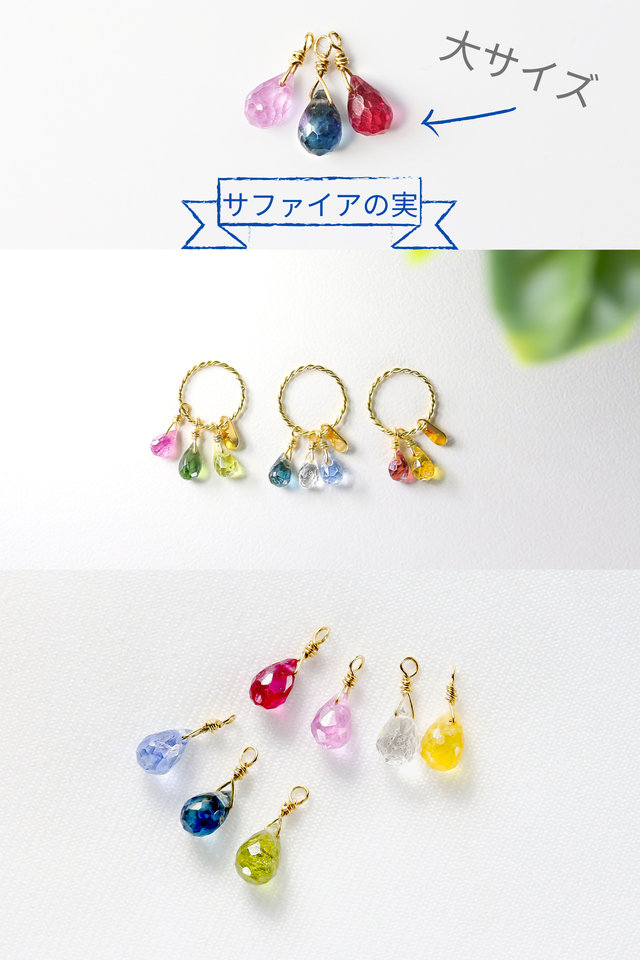 *画像 サファイアの実(大)2個「ブルー」「ピンク」、サファイアの実(大)3個「ホワイト」「ルビー(赤)」「グリーン」
