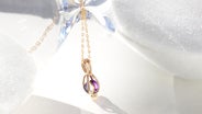 - 天然の宝石を金継ぎの技術で接着した異なる2色の宝石。天然石ならではの色と輝きのハーモニー。