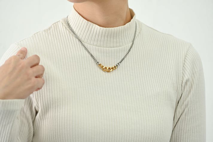 そのため従来のような喜平ネックレスのマイナスのイメージを払拭したい方は、6面や8面といった喜平ではなく2面シングルの喜平ネックレスを選ぶのがおすすめです。ただし、2面シングルの喜平ネックレスのなかにも太く無骨なものも存在するため、チェーンの種類だけでなく素材や太さなども総合的に評価して選ぶことが重要です。