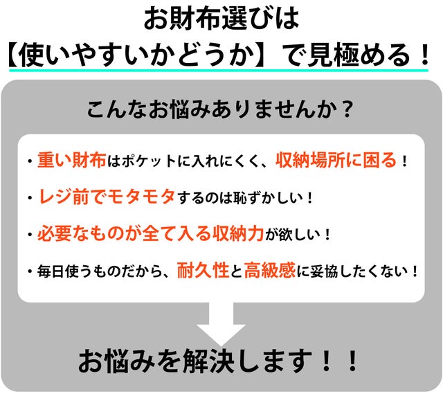 毎日使うものだから、【財布が重い】は余計なイライラの原因となります。