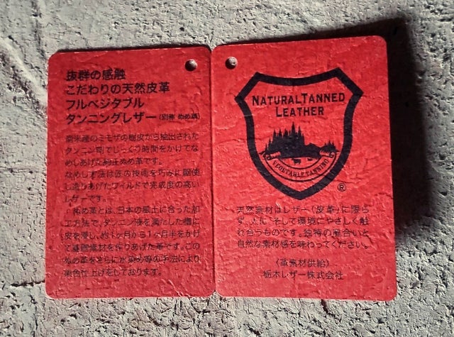 柔らかな質感、耐久性、タンニンの独特な香りはクロム塩などの化学薬品でなめされた革とは明らかな違いがあります。1937年から続く栃木レザー。