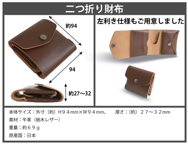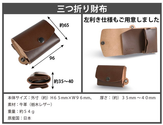 ※三つ折り、二つ折り両型とも左利き用もご用意しました。