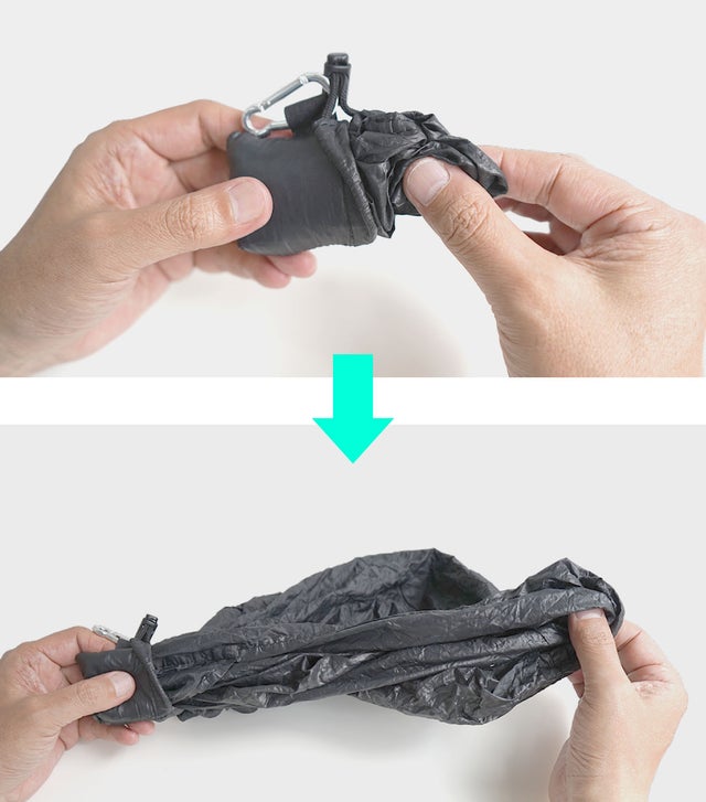本体のハトメ部分に、付属のカラビナを装着するだけ!簡単に取り付けられます。