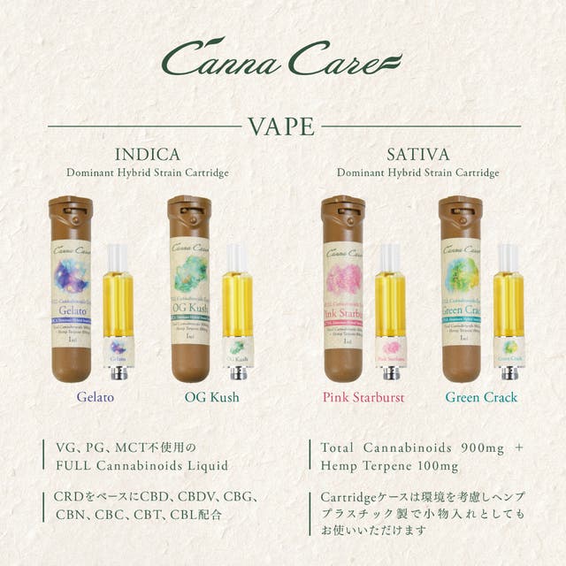・カンナビノイドのみで作られた本物の風味をぜひ御賞味ください。
