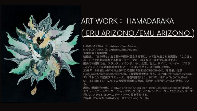 バームのパッケージや化粧箱、Tシャツにも「HAMADARAKA」描きおろしのアートワークを背中一面にあしらっております。