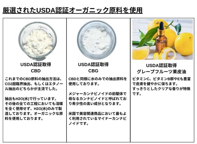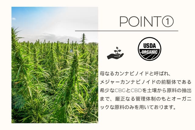 - USDAオーガニック認証取得の完全オーガニックCBD&CBGカンナビノイドバーム