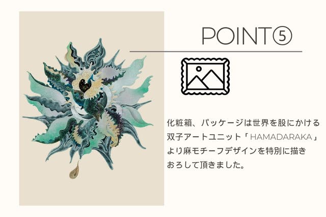 アートユニットHAMADARAKA描きおろし麻モチーフパッケージでのご提供です。