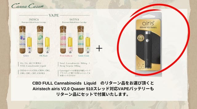 フルカンナビノイドリキッドを応援購入いただいた方には、