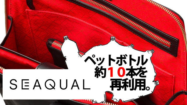 裏地には世界で環境に優しい繊維の一つに認定された「SEAQUAL」を使用。ペットボトルゴミや、海に捨てられたプラスチックゴミを使ったリサイクル素材となっています。Canussaのバッグ1個につき約10本の使用済みペットボトルが使われ、廃棄物を価値のあるものへと生まれ変わらせています。