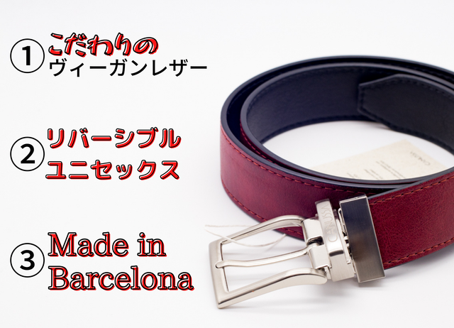 さて、ヴィーガンレザーの魅力を伝えたところで、今度はベルトのデザインいついてです。