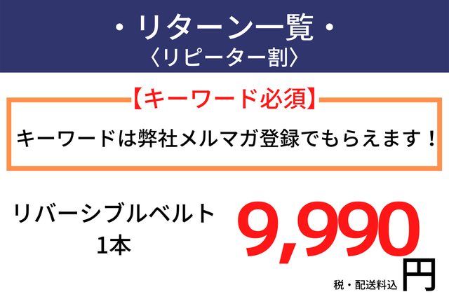 【リピーター割】キーワード必須!Canussaのリバーシブルベルトを1本