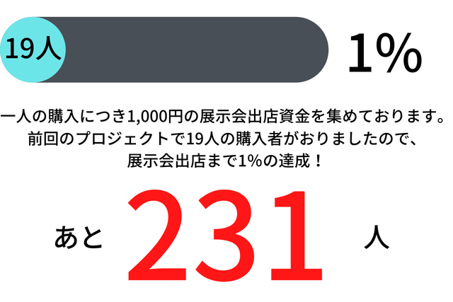 25万円の資金到達で展示会出店を行い、日本での小売店開拓を行っていきたく思っております。
