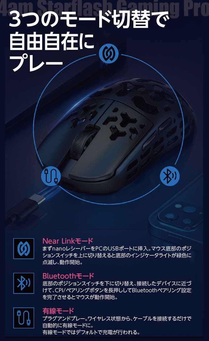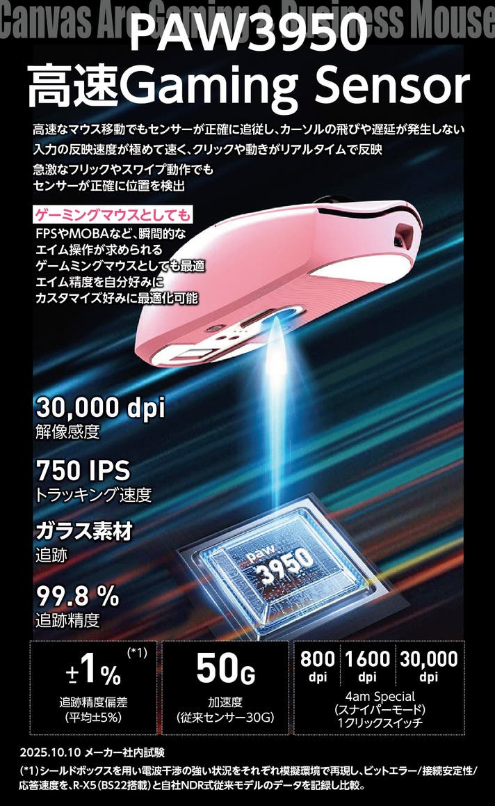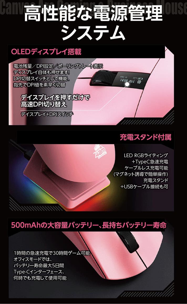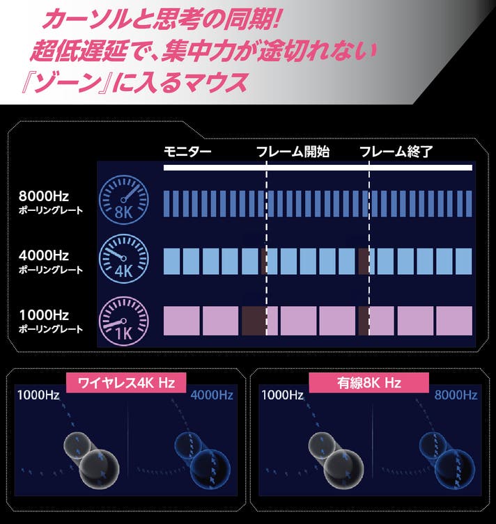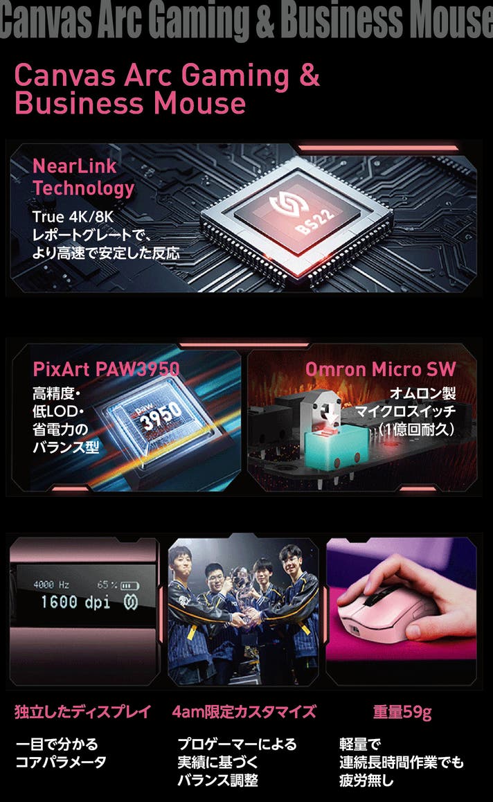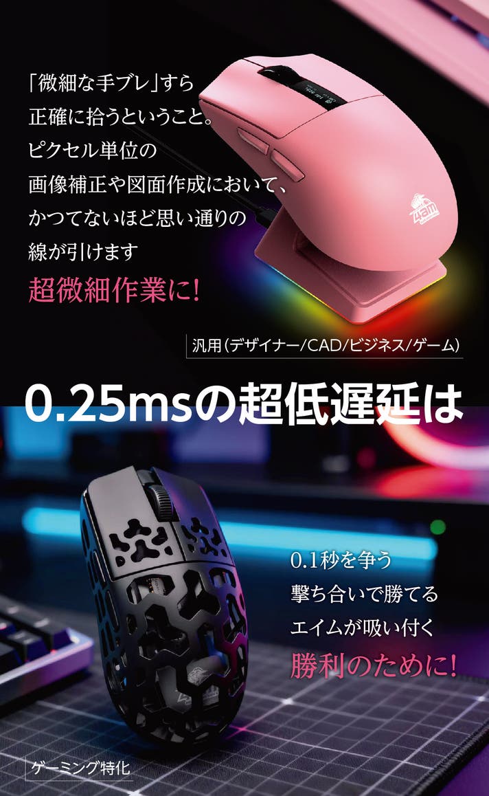 - ゲーミング由来技術の超低遅延技術で、思考と操作のラグをゼロにできる「ゾーンに入る」マウス