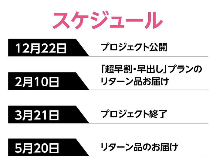 *皆様の応援購入により量産効率が向上した場合、正規販売価格が販売予定価格より下がる可能性もございます。