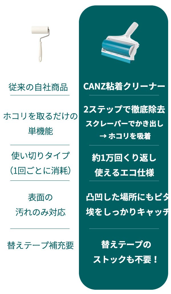 従来の自社商品 vs. CANZもちピタ粘着クリーナー