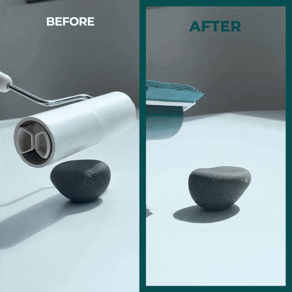 A. シリコンジェル特有のしっかり重みのある粘着力で、細かいホコリや髪の毛、ペットの毛までしっかりキャッチします。でこぼこした場所でも、一般的なテープクリーナーよりも優れた密着力を発揮します。