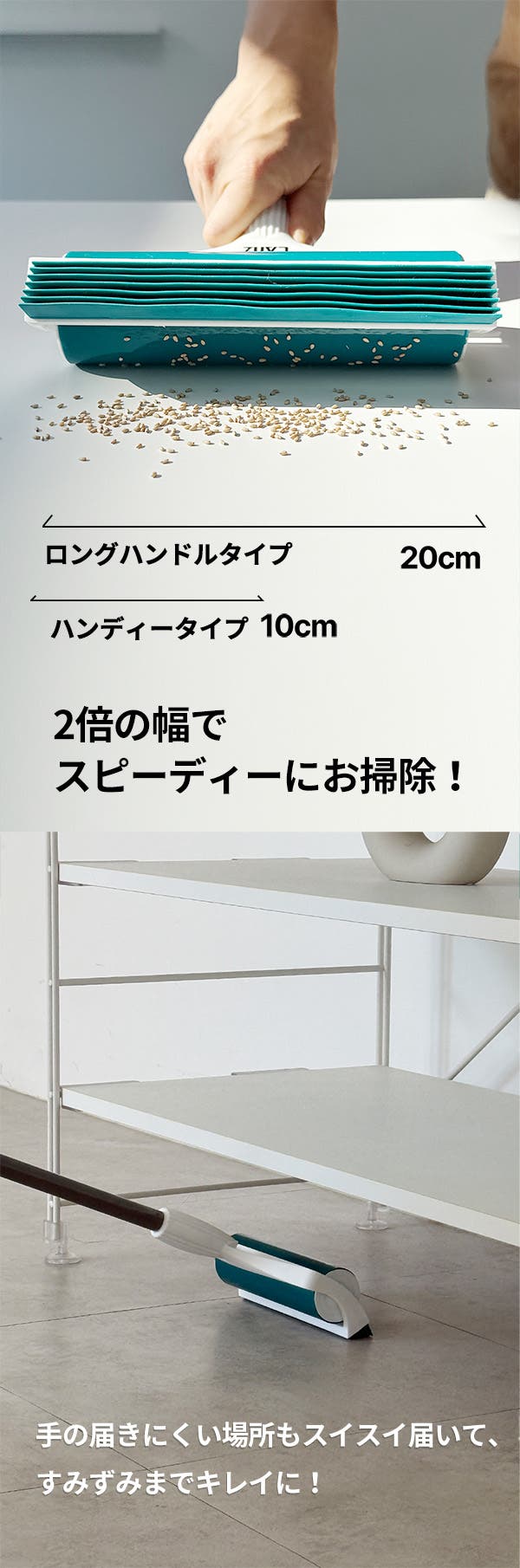 ハンドルを伸ばしてピタッと密着!ホコリをしっかりキャッチします。