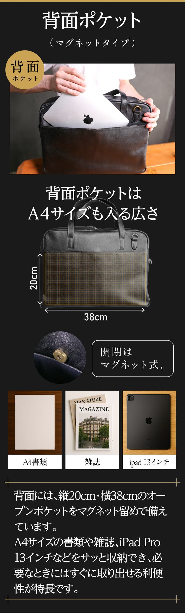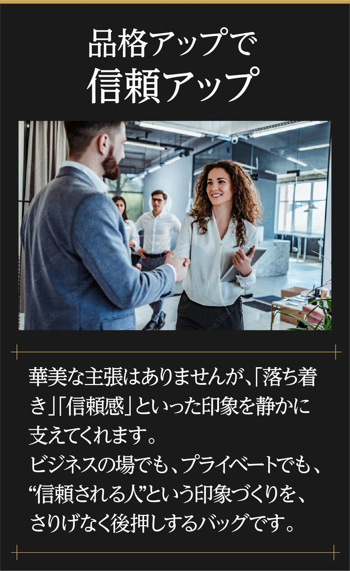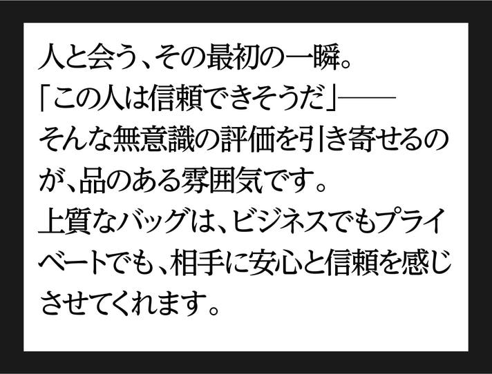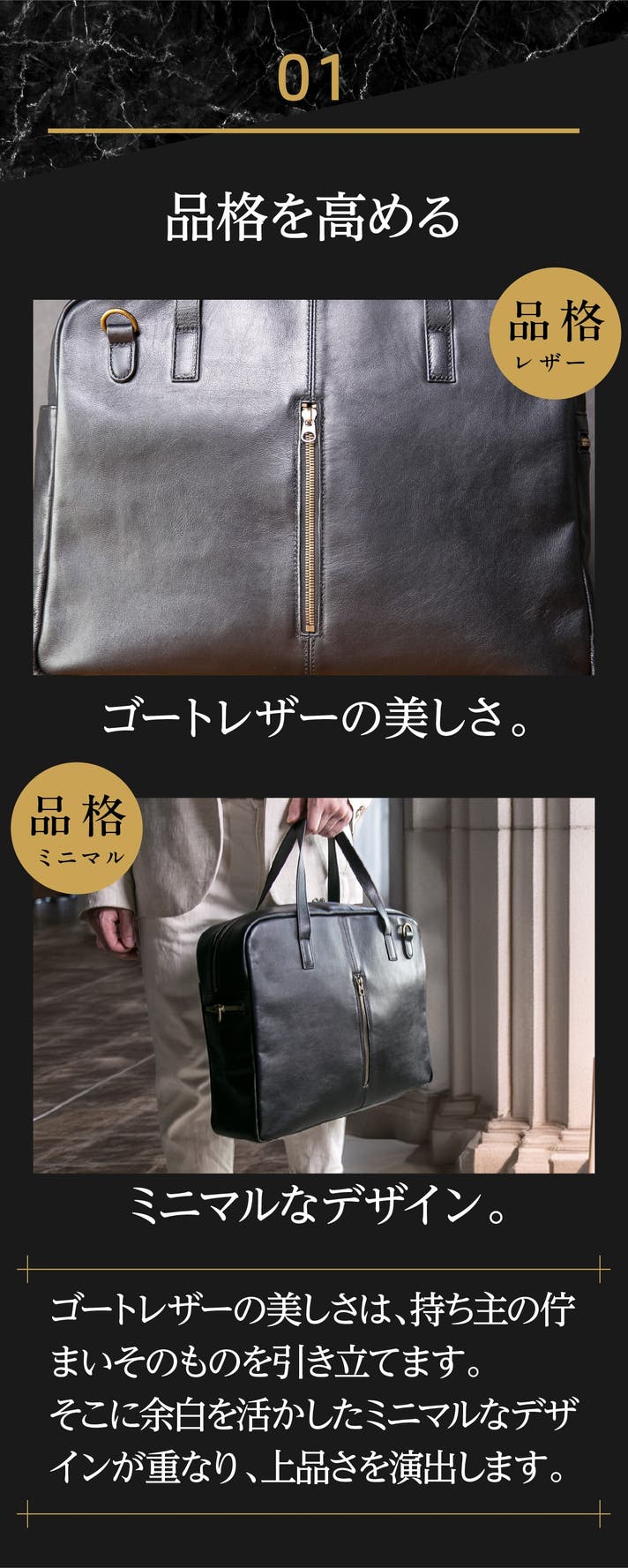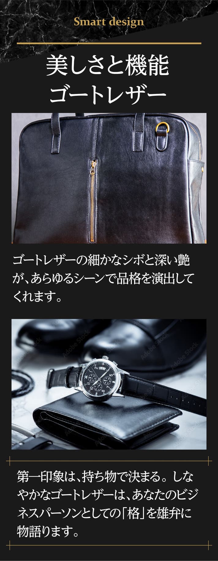 - 第一印象を格上げするゴートレザーで、商談や会合で信頼感を演出。