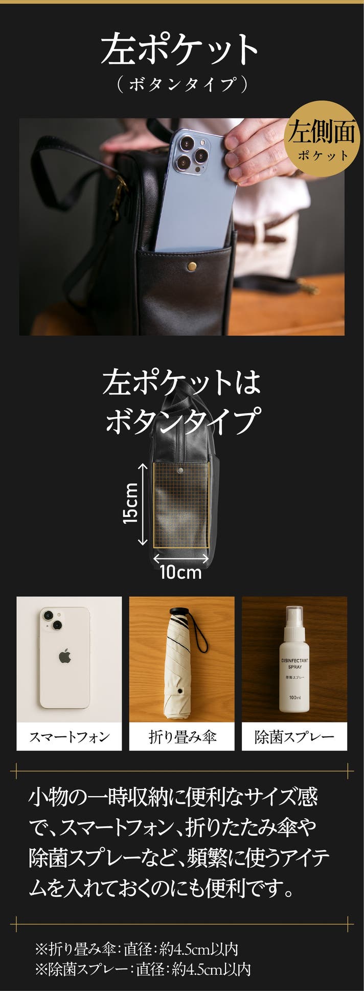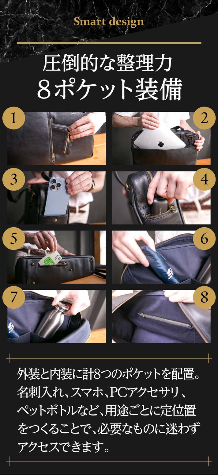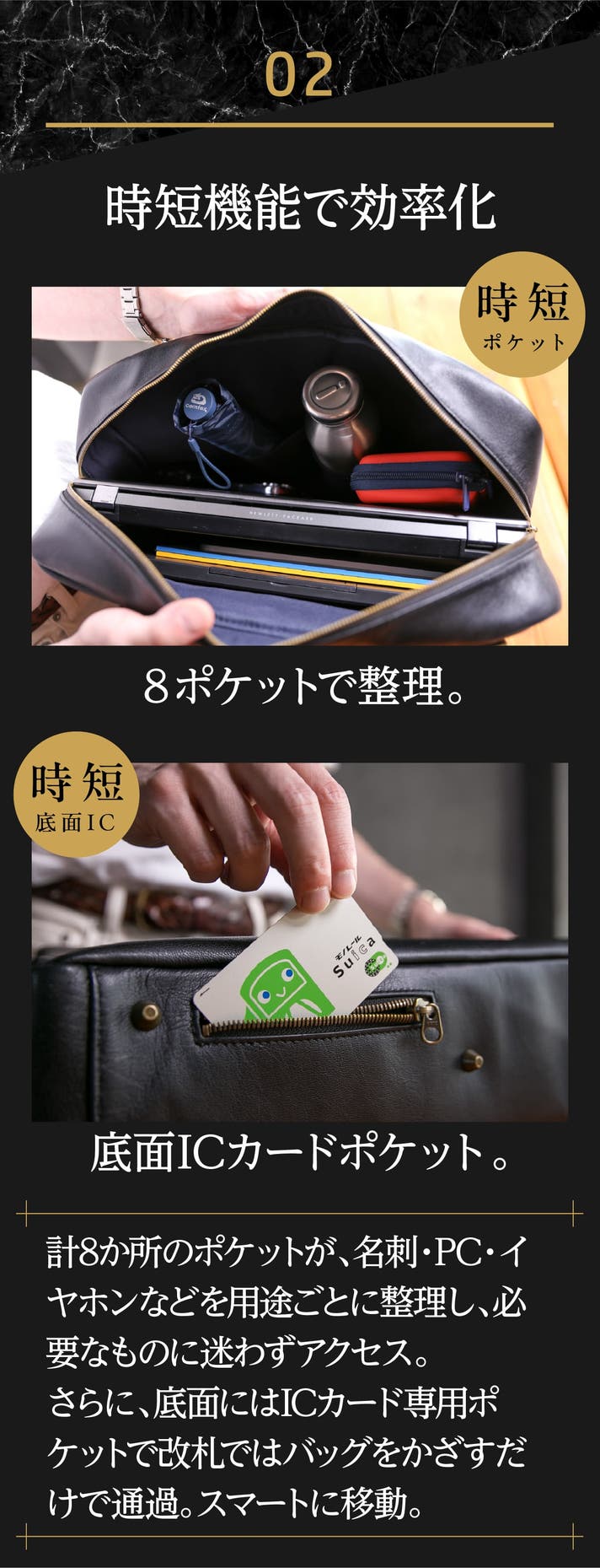 - 底面ICポケットと8収納で、探さずスマートに取り出せる時短設計。