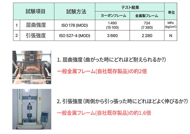 (左) カーボンフレーム:17.2m/sまで耐風 / (右)金属製フレーム:15.9m/sまで耐風