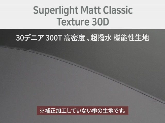晴雨兼用傘で、通常のポリエステル生地より撥水力に優れ、シワが付きにくいマットなプレミアム生地です。