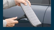 そこで発想を転換し、当社のカースイーパーのヘッドに採用してみたのです。すると、水を切った後に使うことでカーボンの使い勝手が格段に向上。さらに厚手パッドを内蔵したことでガラスにしっかりフィットし、軽いタッチでムラなく仕上げられるようになりました。