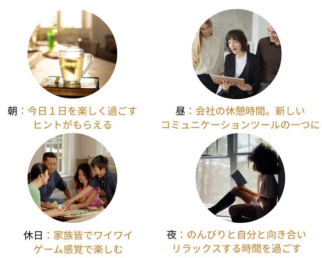ゲーム感覚で気軽にカードを使っていくうちに、自分の奥深くにある気持ちまで辿り着ける事があります。忙しさのあまり気づけなかった気持ちと向き合う事で、地に足をつけた建設的な考え方が選択でき、自分を大切にしているという幸福感に繋がります。