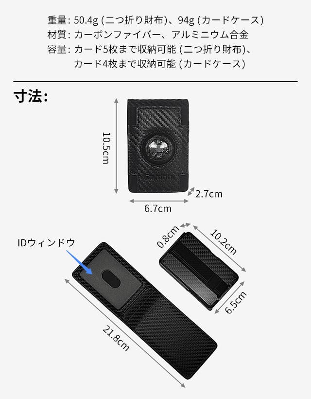 - デュアルモジュール設計で、カードケース・二つ折り財布・セットの3通りの使い方が可能。