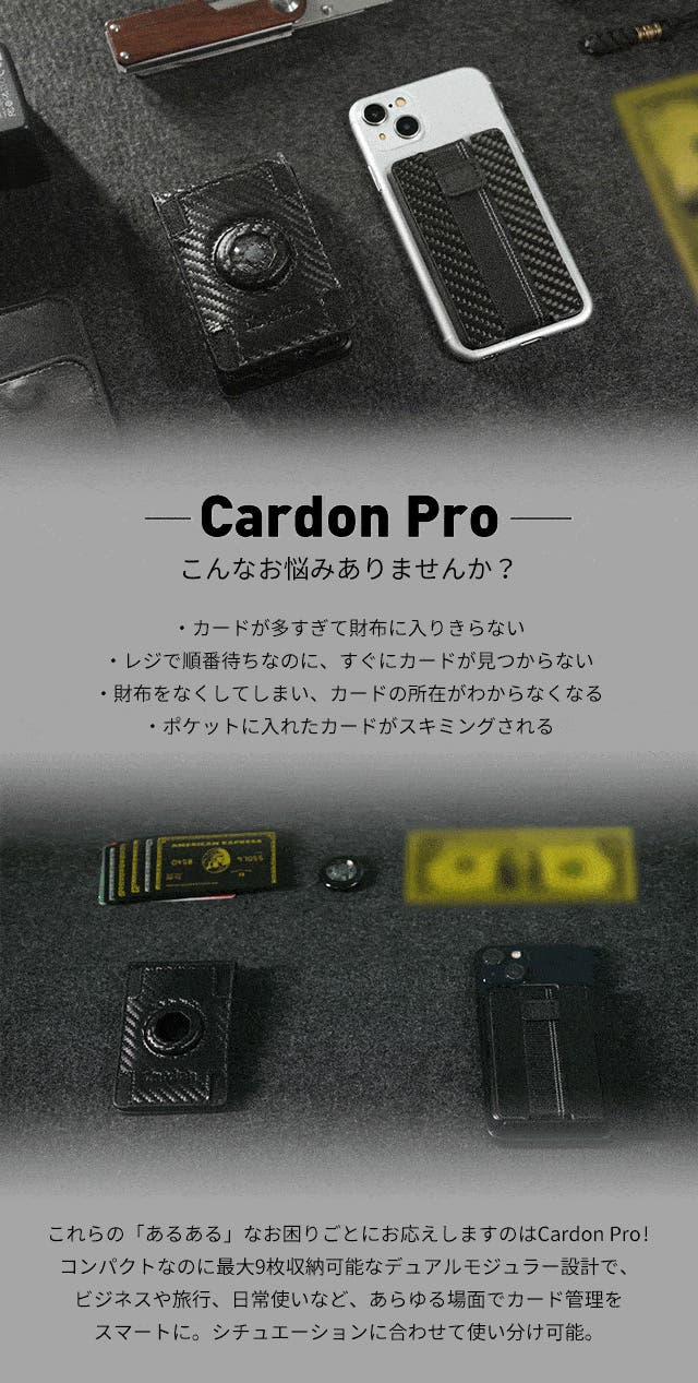 私たちは、Cardon Proが、ビジネスパーソン、学生、旅行者など、あらゆる人にとって、日々の生活をより快適にする、最高の相棒になると信じています。