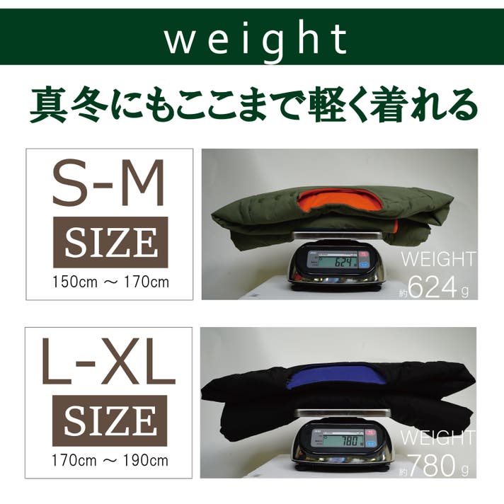 重さ 【1kgを切る圧倒的な軽さ】S-M:約624g、L-XL:約780g