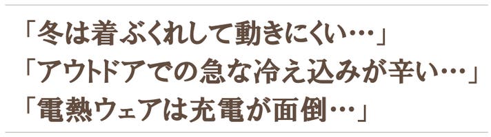 - 極寒でも重ね着が不要で軽く着こなせる超温熱ホットジャケット。軽く被ってこれ1枚でも余裕の暖かさ
