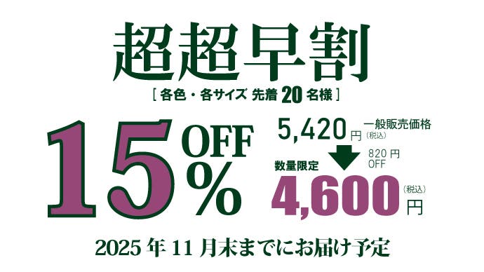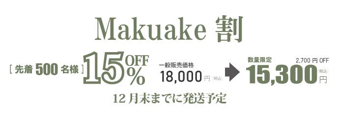 ・一般販売予定価格(税込):¥18,000⇒¥15,300【2,700円引き!】