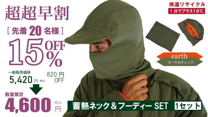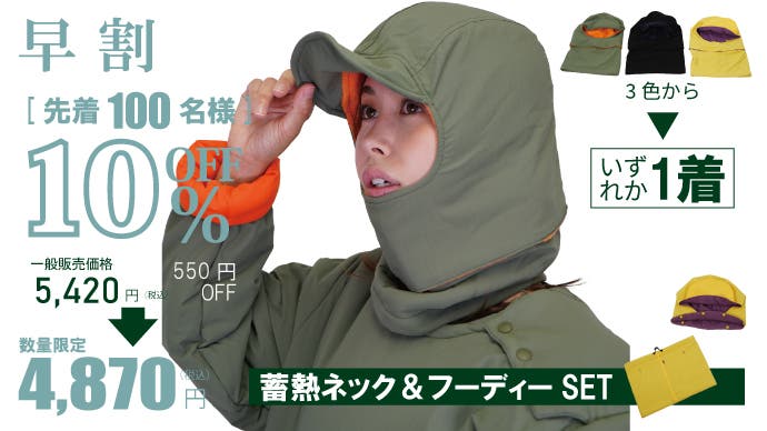 【超早割特別セット】蓄熱×撥水プルオーバー・ネックフーディー セット