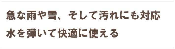 [ミズ] 雨や泥ハネにも撥水効果で対応