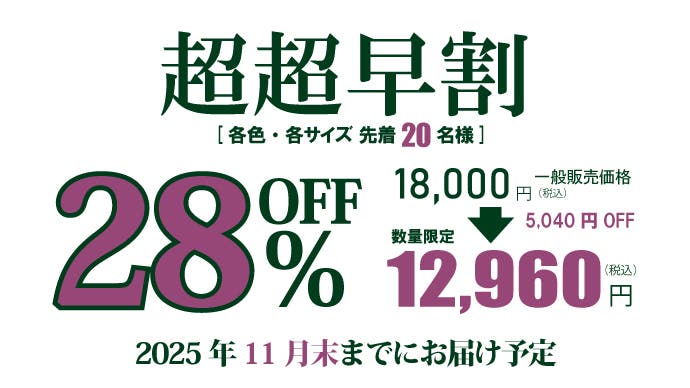 ・一般販売予定価格(税込):¥18,000⇒¥12,960【5,040円引き!】