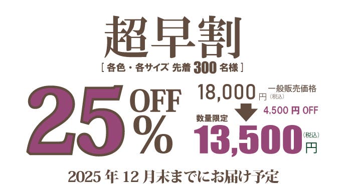 ・一般販売予定価格(税込):¥18,000⇒¥13,500【4,500円引き!】