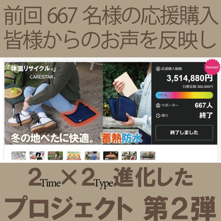 電気のいらない蓄熱シートヒーター https://www.makuake.com/project/carestar8/