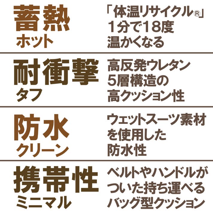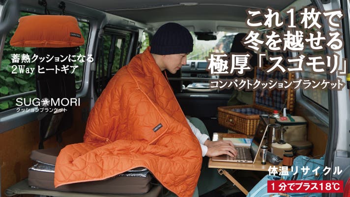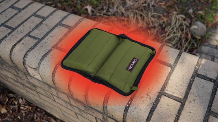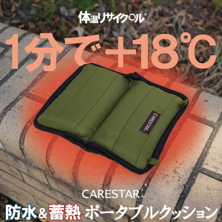 - 1分で18度暖かくなる。この蓄熱クッションがあればレジャー・ライフ・ビジネスで芯から寒さ知らず