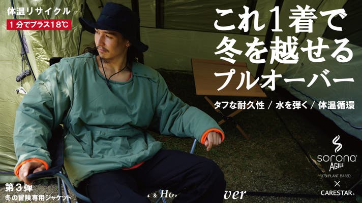 1分で約18度温まる。極寒で重ね着無しで過ごせる「体温リサイクル」タフジャケット https://www.makuake.com/project/carestar21/