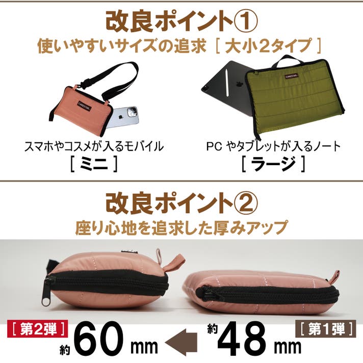 - 【超進化】温める×座る×守る×運ぶを1つに。タフな耐衝撃ガジェット系クッション型バッグ2タイプ