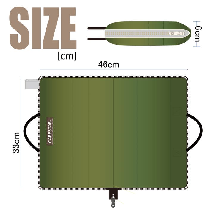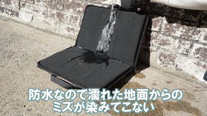 - 裏面防水で濡れた地べたも水分が染みない。独自開発(特許庁意匠登録済)ファスナー開閉式で一発収納