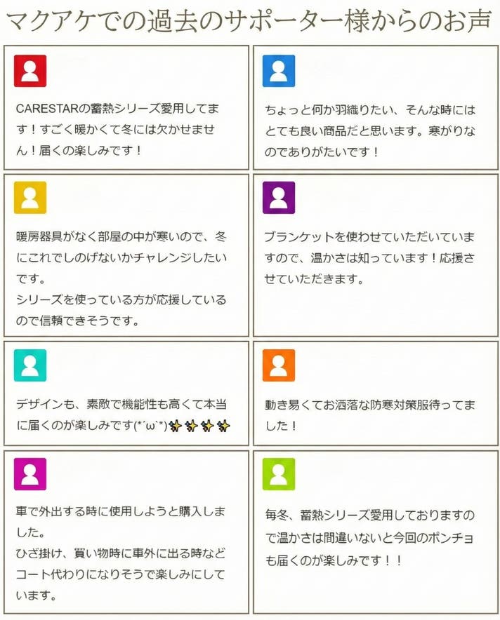 体温リサイクル蓄熱Vポンチョ https://www.makuake.com/project/carestar/