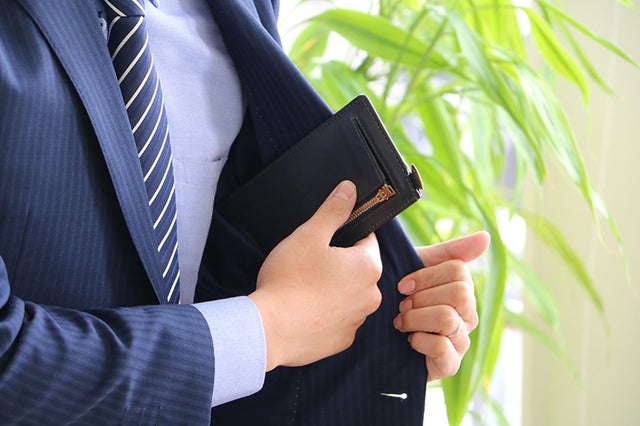 ジャケットの内ポケットに入れてもかさ張らない、すっきりスリムな財布です。