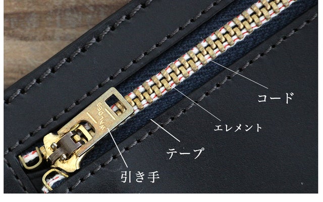 他の一般的なファスナーと違い、財布を取り出した時やお金を支払う時に、ふと目に入る赤いラインが特徴的です。