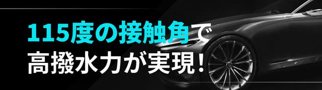水弾きの目安である、水玉と接地面できる角度(接触角)は115度。