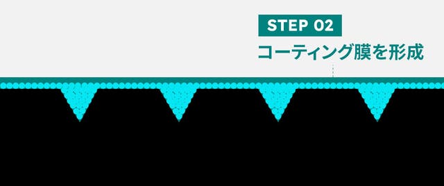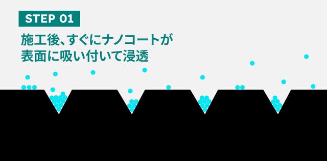 ナノ化した成分は噴射した際、塗装面の僅かな凹凸にも入り込み定着できます。